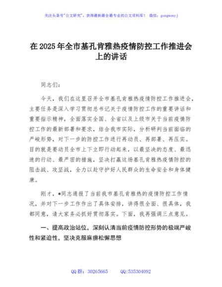 / 在2025年全市基孔肯雅热疫情防控工作推进会上的讲话