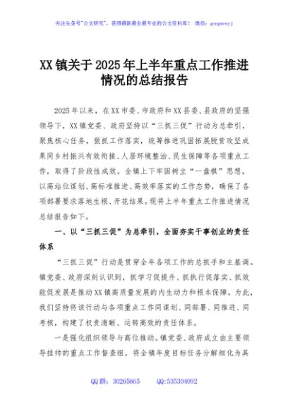 / XX镇关于2025年上半年重点工作推进情况的总结报告