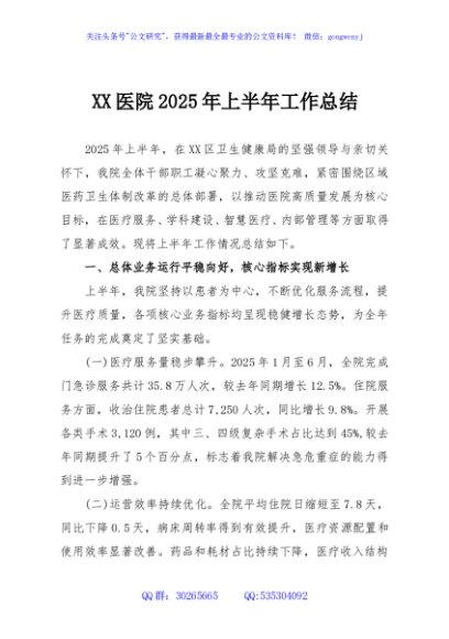 / XX医院2025年上半年工作总结
