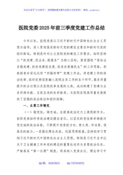 / 医院党委2025年前三季度党建工作总结