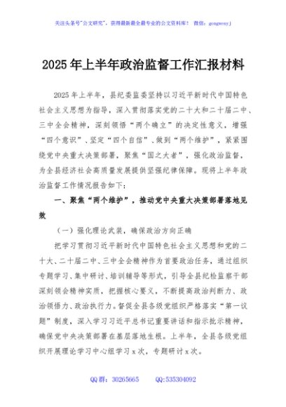 / 2025年上半年政治监督工作汇报材料
