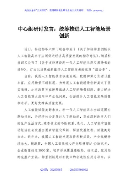 / 中心组研讨发言:统筹推进人工智能场景创新