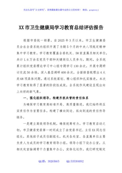 / XX市卫生健康局学习教育总结评估报告