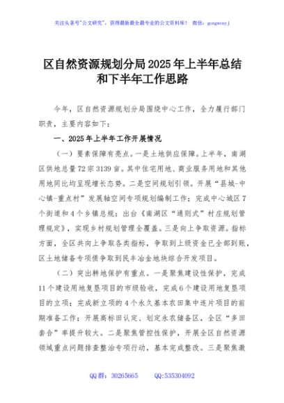 / 区自然资源规划分局2025年上半年总结和下半年工作思路