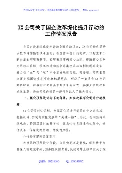 / XX公司关于国企改革深化提升行动的工作情况报告