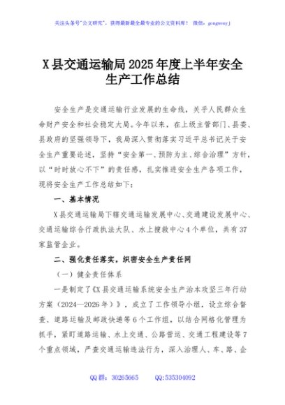 / X县交通运输局2025年度上半年安全生产工作总结