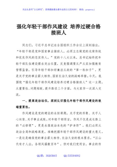 / 强化年轻干部作风建设 培养过硬合格接班人