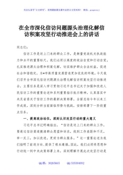 / 在全市深化信访问题源头治理化解信访积案攻坚行动推进会上的讲话