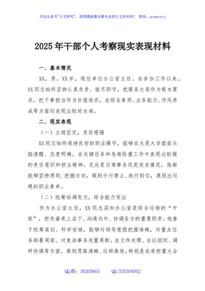 / 2025年干部个人考察现实表现材料