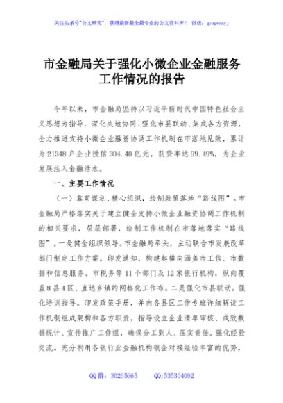 / 市金融局关于强化小微企业金融服务工作情况的报告