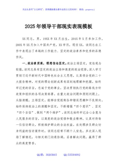 / 2025年领导干部现实表现模板
