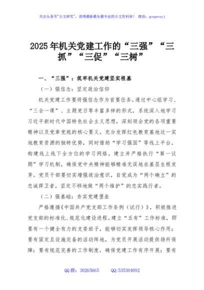 / 2025年机关党建工作的“三强”“三抓”“三促”“三树”