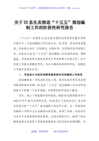 / 关于XX县扎实推进“十五五”规划编制工作的阶段性研究报告