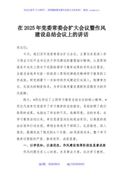 / 在2025年党委常委会扩大会议暨作风建设总结会议上的讲话