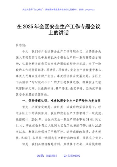 / 在2025年全区安全生产工作专题会议上的讲话