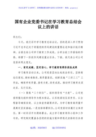 / 国有企业党委书记在学习教育总结会议上的讲话