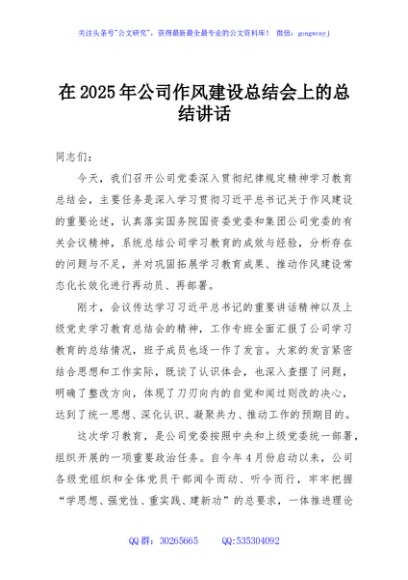 / 在2025年公司作风建设总结会上的总结讲话