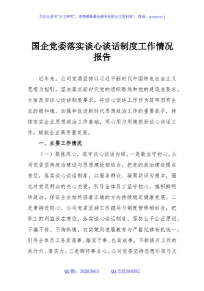 / 国企党委落实谈心谈话制度工作情况报告