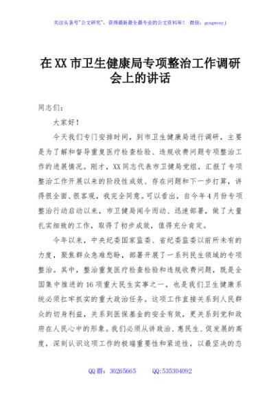 / 在XX市卫生健康局专项整治工作调研会上的讲话