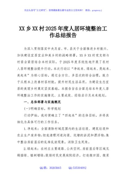 / XX乡XX村2025年度人居环境整治工作总结报告