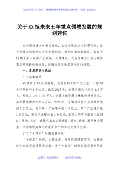 / 关于XX镇未来五年重点领域发展的规划建议