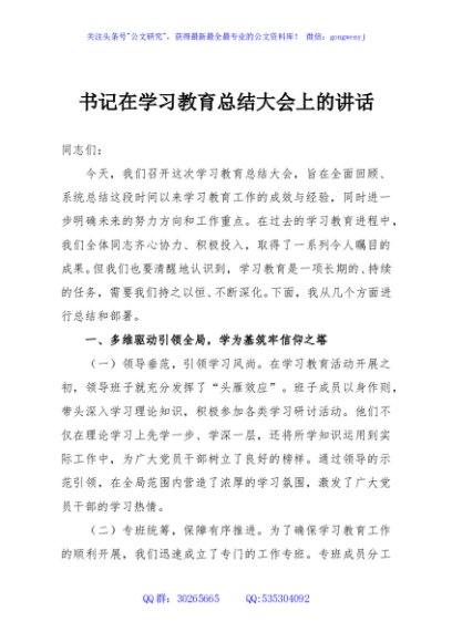 / 书记在学习教育总结大会上的讲话