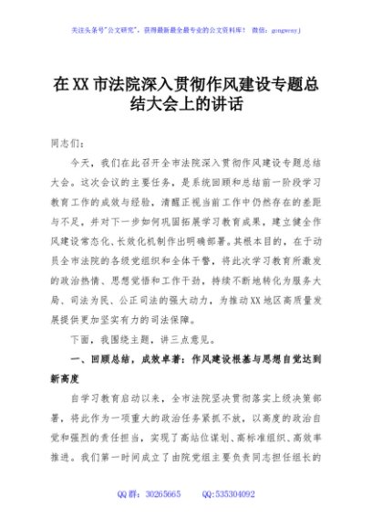 / 在XX市法院深入贯彻作风建设专题总结大会上的讲话