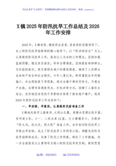/ X镇2025年防汛抗旱工作总结及2026年工作安排