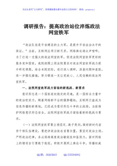 / 调研报告:提高政治站位淬炼政法网宣铁军