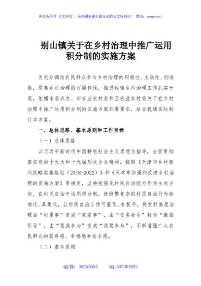 / 别山镇关于在乡村治理中推广运用积分制的实施方案