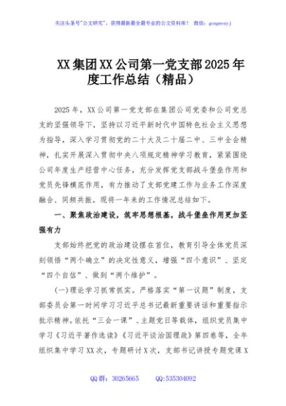 / XX集团XX公司第一党支部2025年度工作总结(精品)