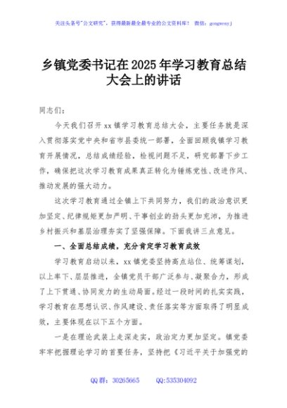 / 乡镇党委书记在2025年学习教育总结大会上的讲话