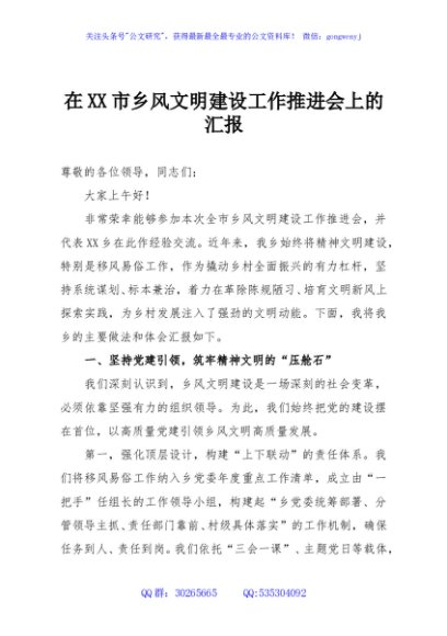 / 在XX市乡风文明建设工作推进会上的汇报