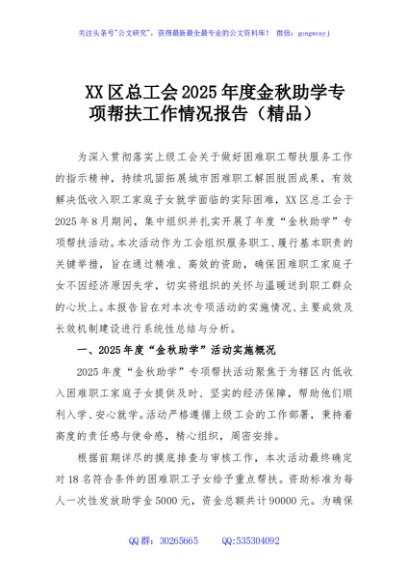 / XX区总工会2025年度金秋助学专项帮扶工作情况报告(精品)