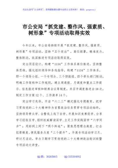 / 市公安局“抓党建、整作风、强素质、树形象”专项活动取得实效