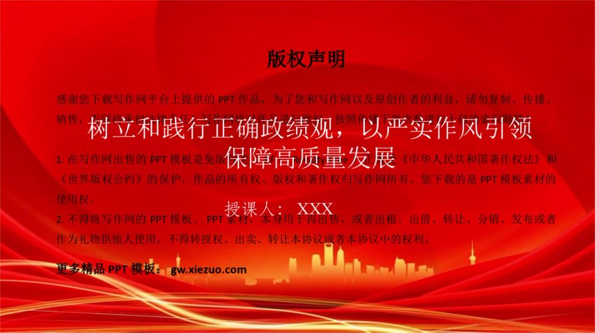/ 廉政党课PPT:树立和践行正确政绩观,以严实作风引领保障高质量发展