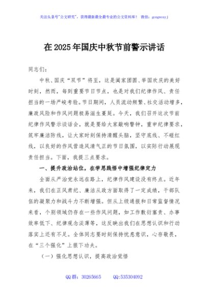 / 在2025年国庆中秋节前警示讲话