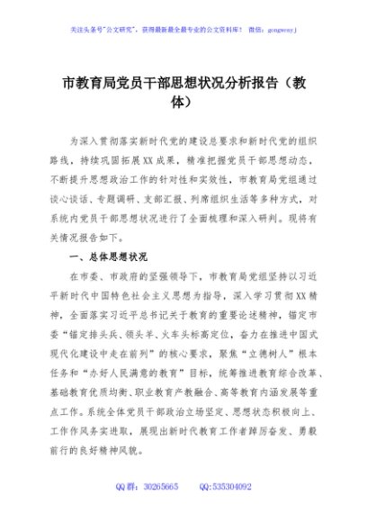 / 市教育局党员干部思想状况分析报告(教体)