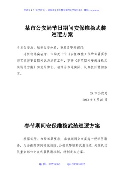 / 某市公安局节日期间安保维稳武装巡逻方案