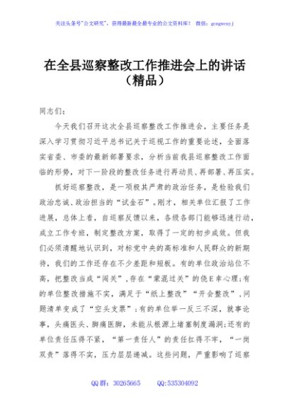 / 在全县巡察整改工作推进会上的讲话(精品)