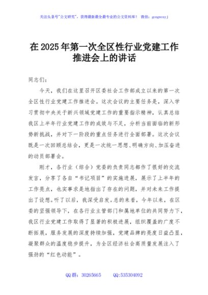 / 在2025年第一次全区性行业党建工作推进会上的讲话