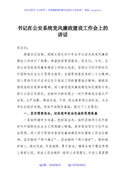 / 书记在公安系统党风廉政建设工作会上的讲话
