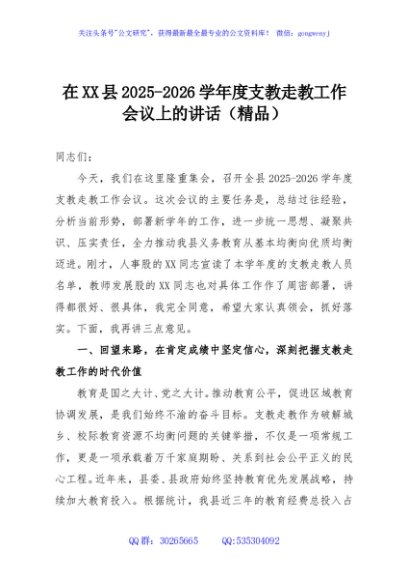 / 在XX县2025-2026学年度支教走教工作会议上的讲话(精品)
