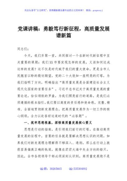 / 党课讲稿:勇毅笃行新征程,高质量发展谱新篇