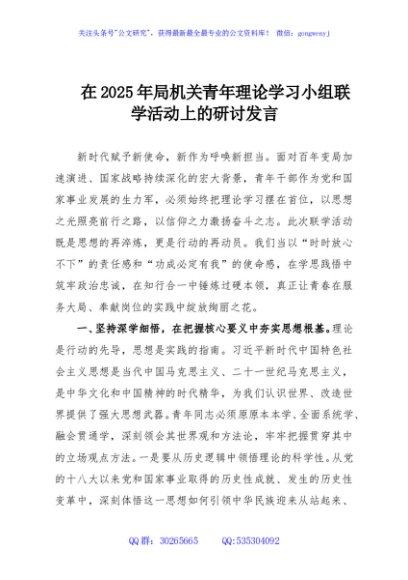 / 在2025年局机关青年理论学习小组联学活动上的研讨发言