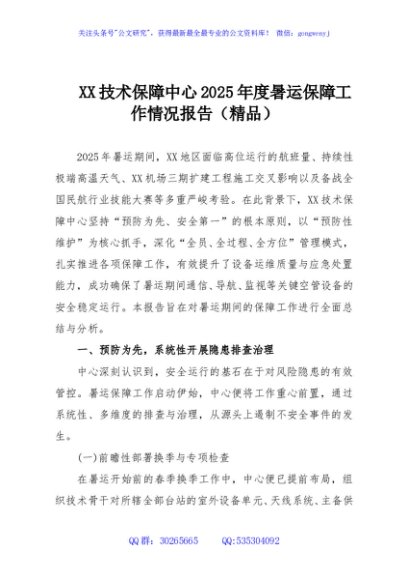 / XX技术保障中心2025年度暑运保障工作情况报告(精品)