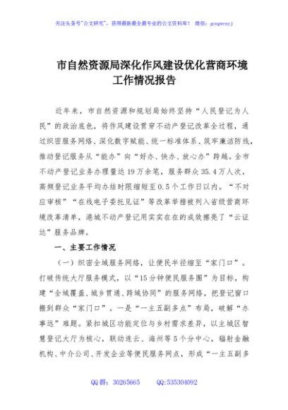 / 市自然资源局深化作风建设优化营商环境工作情况报告