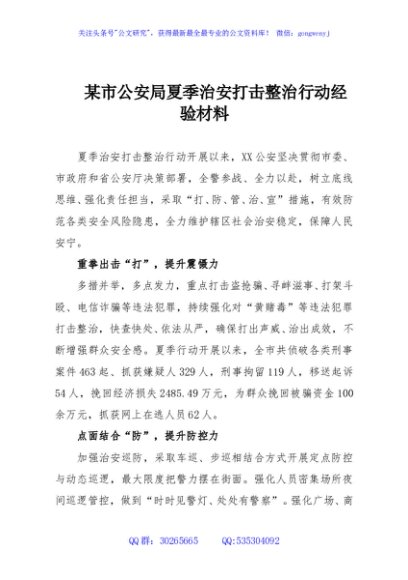/ 某市公安局夏季治安打击整治行动经验材料