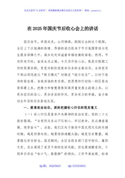 / 在2025年国庆节后收心会上的讲话