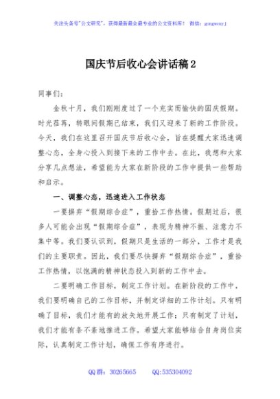 国庆节后收心会讲话:调整状态、全面推进、狠抓落实